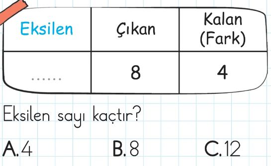 2. Sınıf Toplama ve Çıkarma İşlemlerinin İlişkisi (Verilmeyen Toplanan, Eksilen, Çıkan) Test 5