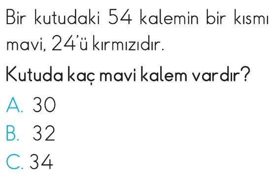 2. Sınıf Toplama ve Çıkarma İşlemlerinin İlişkisi (Verilmeyen Toplanan, Eksilen, Çıkan) Test 5