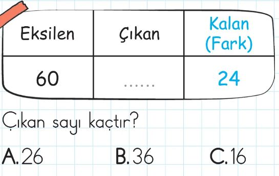 2. Sınıf Toplama ve Çıkarma İşlemlerinin İlişkisi (Verilmeyen Toplanan, Eksilen, Çıkan) Test 6