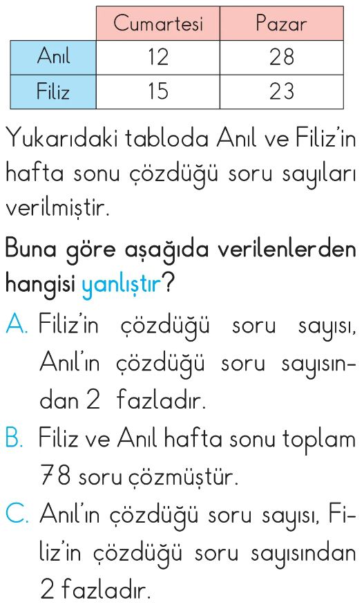 2. Sınıf İşlemlerden Cebirsel Düşünmeye Tema Değerlendirme Test 2