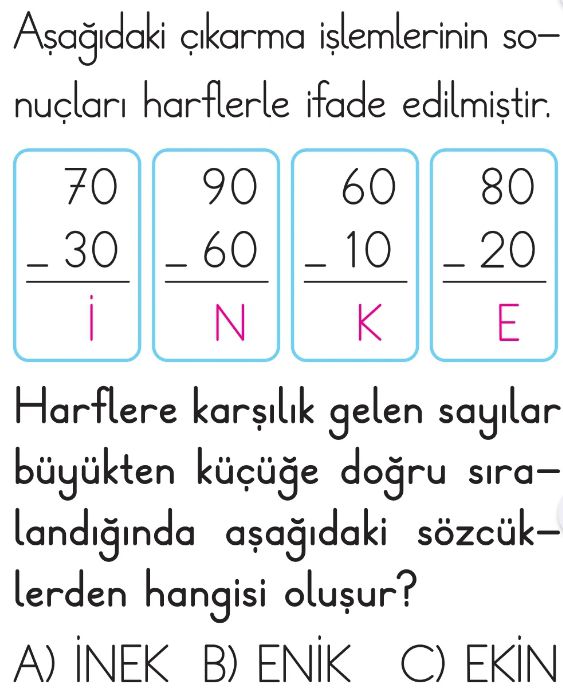 2. Sınıf İşlemlerden Cebirsel Düşünmeye Tema Değerlendirme Test 3
