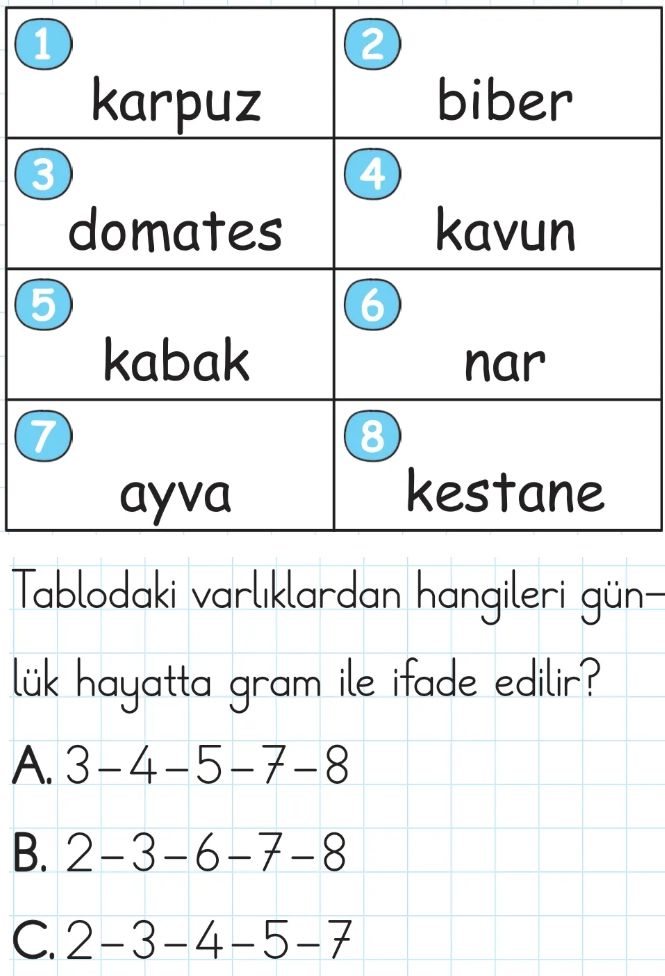 2. Sınıf Uzunluk ve Kütle Ölçme - Tahmin Etme Test 3