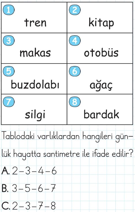 2. Sınıf Uzunluk ve Kütle Ölçme - Tahmin Etme Test 4