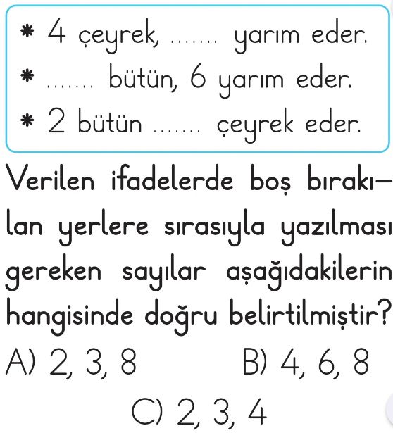 2. Sınıf Sayılar ve Nicelikler 2 Tema Değerlendirme Test 1