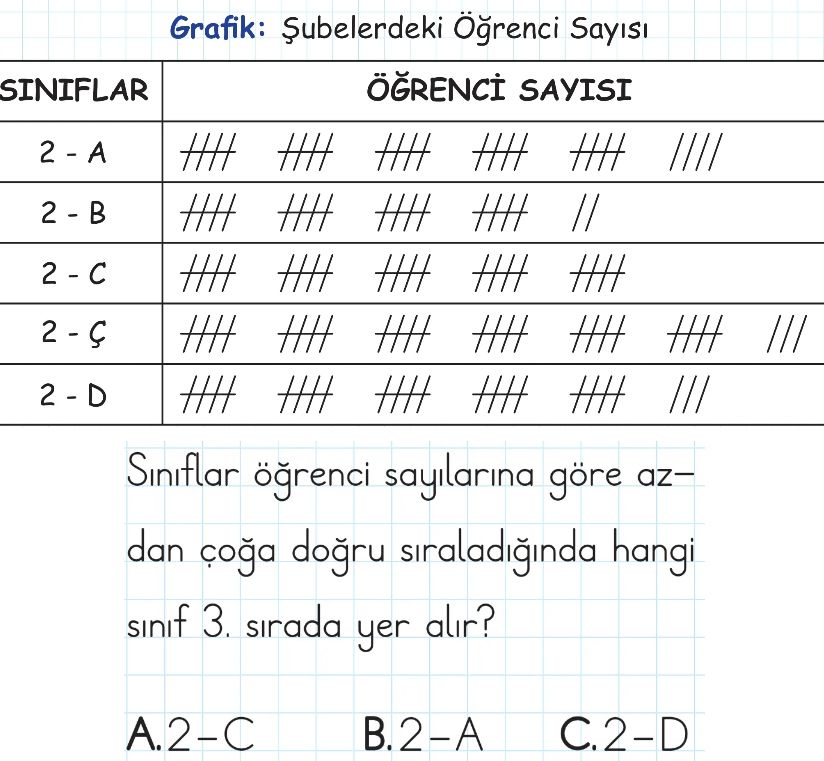 2. Sınıf Çetele ve Sıklık Tablosu Test 1