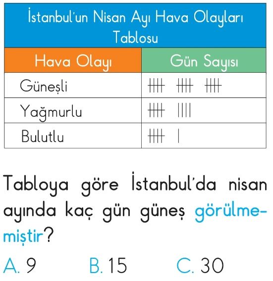 2. Sınıf Çetele ve Sıklık Tablosu Test 1
