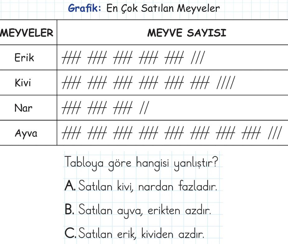 2. Sınıf Çetele ve Sıklık Tablosu Test 1