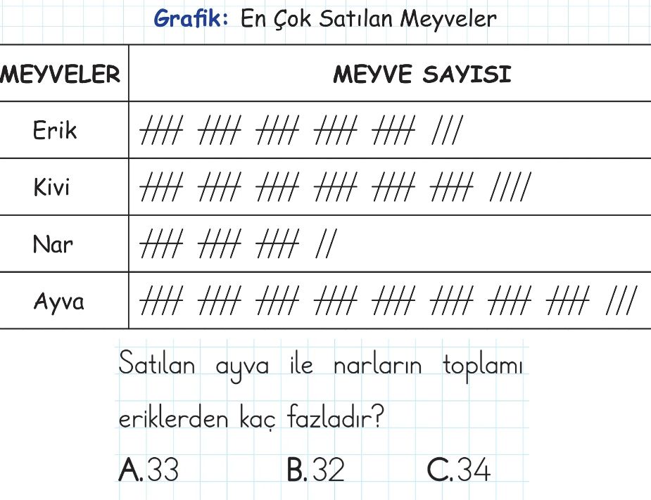 2. Sınıf Çetele ve Sıklık Tablosu Test 1