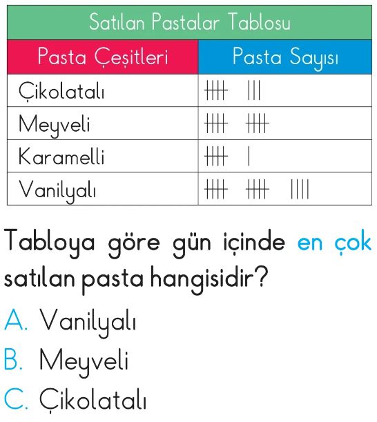 2. Sınıf Çetele ve Sıklık Tablosu Test 1