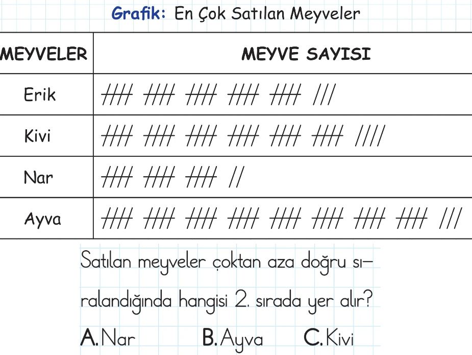 2. Sınıf Çetele ve Sıklık Tablosu Test 2