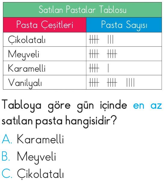 2. Sınıf Çetele ve Sıklık Tablosu Test 2