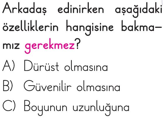 2. Sınıf Ben ve Okulum Değerlendirme Test 3