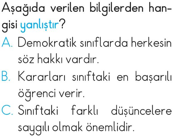 2. Sınıf Ben ve Okulum Değerlendirme Test 3