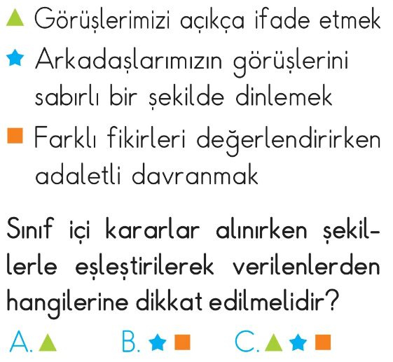 2. Sınıf Ben ve Okulum Değerlendirme Test 3