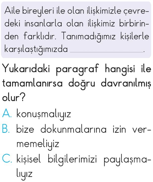 2. Sınıf Sağlığım ve Güvenliğim Değerlendirme Test 1