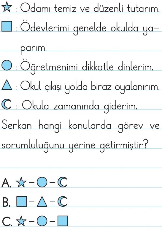 2. Sınıf Görevim, Sorumluluğum Test 1