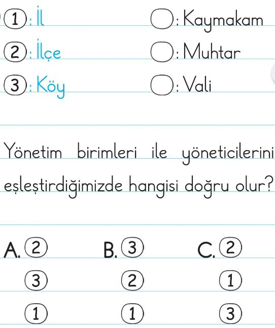 2. Sınıf Yönetim Birimlerini Tanıyorum Test 1