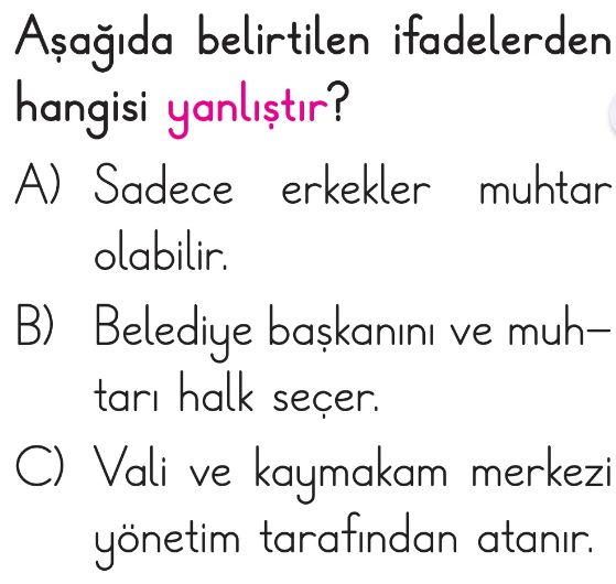 2. Sınıf Yönetim Birimlerini Tanıyorum Test 2