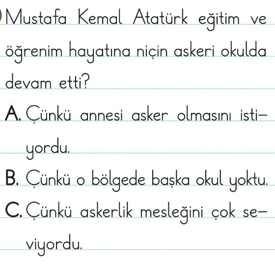 2. Sınıf Mustafa Kemal Atatürk Nasıl Bir Öğrenciydi Test 1
