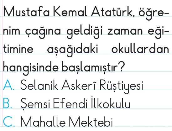 2. Sınıf Mustafa Kemal Atatürk Nasıl Bir Öğrenciydi Test 1