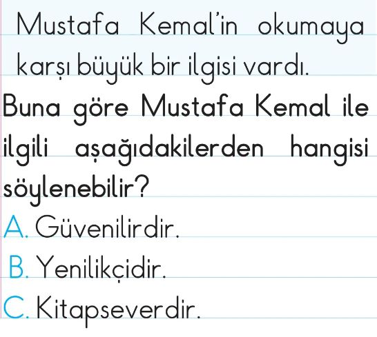 2. Sınıf Mustafa Kemal Atatürk Nasıl Bir Öğrenciydi Test 1
