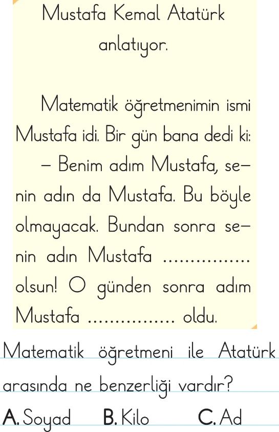 2. Sınıf Mustafa Kemal Atatürk Nasıl Bir Öğrenciydi Test 2