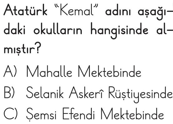 2. Sınıf Mustafa Kemal Atatürk Nasıl Bir Öğrenciydi Test 2