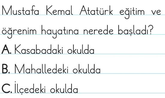 2. Sınıf Mustafa Kemal Atatürk Nasıl Bir Öğrenciydi Test 2