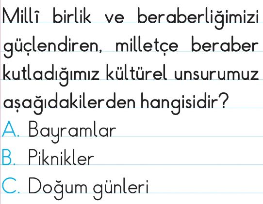 2. Sınıf Bayramlarımızla Gururluyuz Test 1