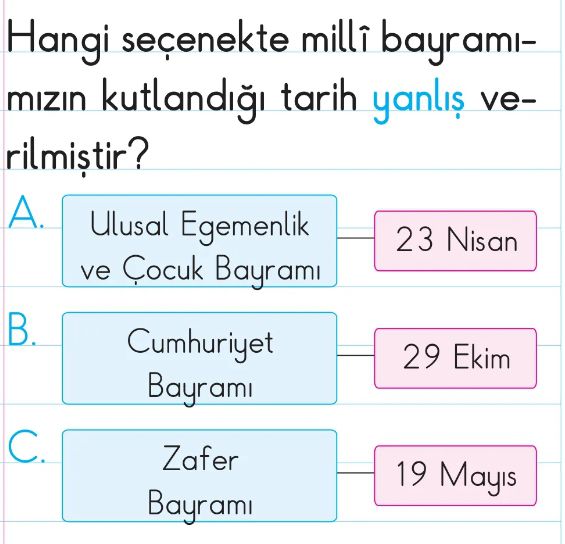 2. Sınıf Bayramlarımızla Gururluyuz Test 2
