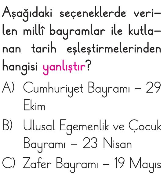 2. Sınıf Bayramlarımızla Gururluyuz Test 2