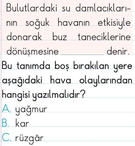 2. Sınıf Hava Olayları ve Mevsimler Test 1
