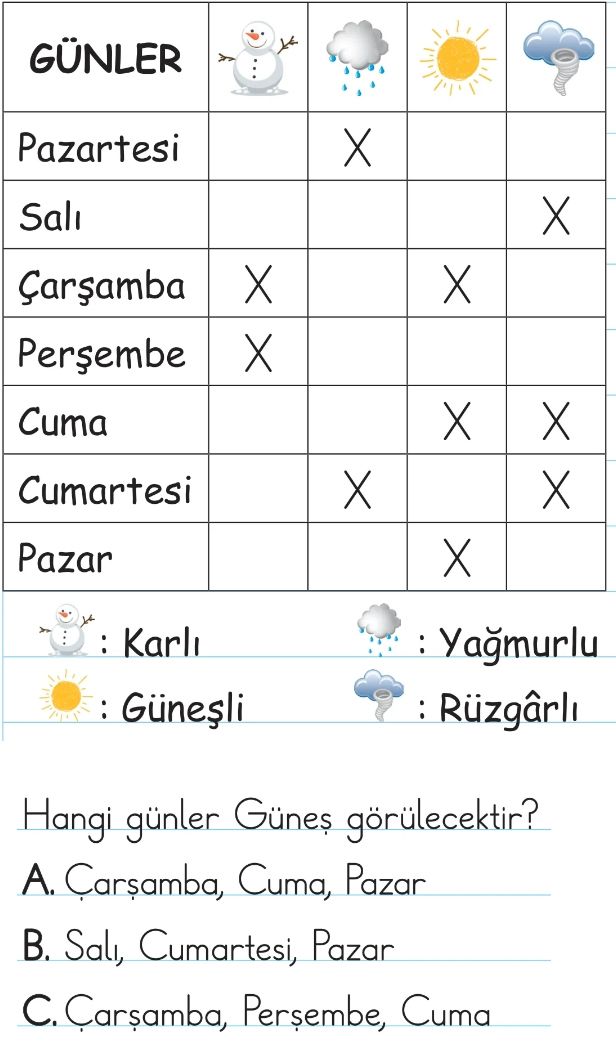 2. Sınıf Hava Olayları ve Mevsimler Test 1