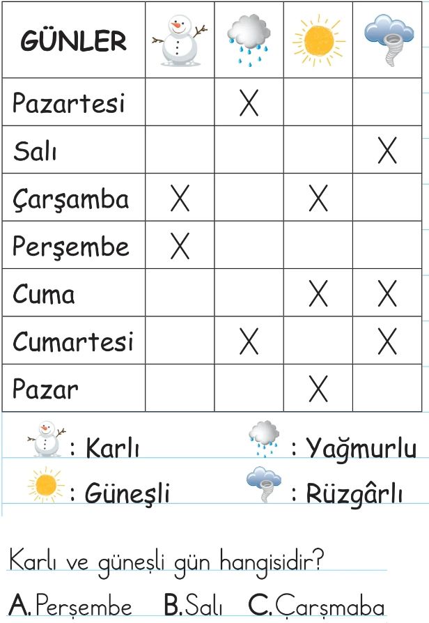 2. Sınıf Hava Olayları ve Mevsimler Test 1
