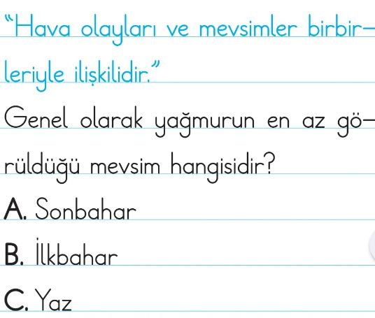 2. Sınıf Hava Olayları ve Mevsimler Test 1