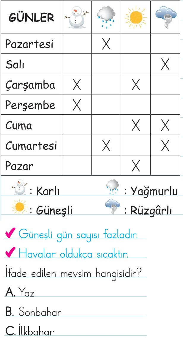 2. Sınıf Hava Olayları ve Mevsimler Test 1