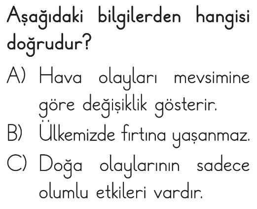 2. Sınıf Hava Olayları ve Mevsimler Test 2