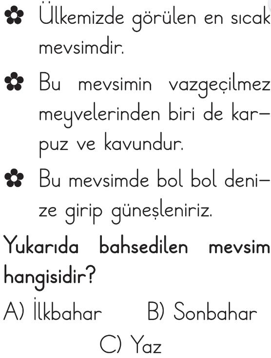 2. Sınıf Hava Olayları ve Mevsimler Test 2