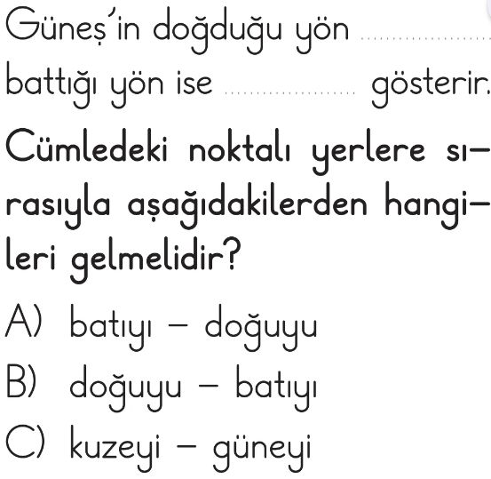 2. Sınıf Doğayı Gözlemlerim, Yönümü Bulurum Test 2