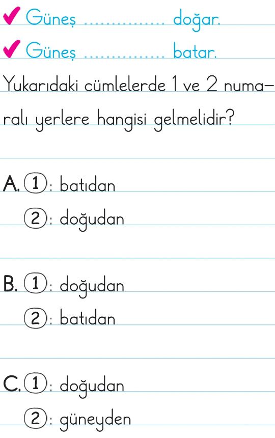 2. Sınıf Doğayı Gözlemlerim, Yönümü Bulurum Test 2