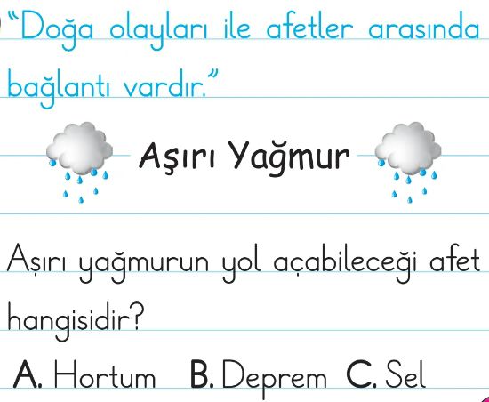 2. Sınıf Afetlere Karşı Önlemler Test 1