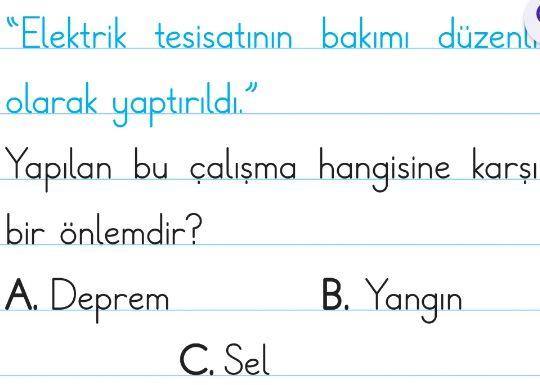 2. Sınıf Afetlere Karşı Önlemler Test 2