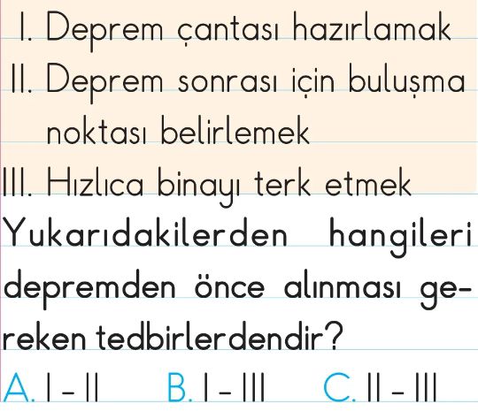 2. Sınıf Afetlere Karşı Önlemler Test 2