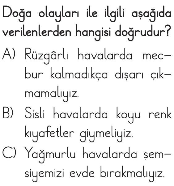 2. Sınıf Doğa ve Çevre Değerlendirme Test 1