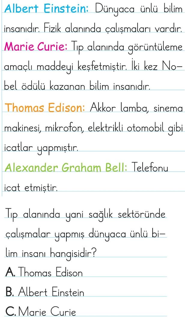 2. Sınıf Bilim İnsanları İyi ki Var Test 1