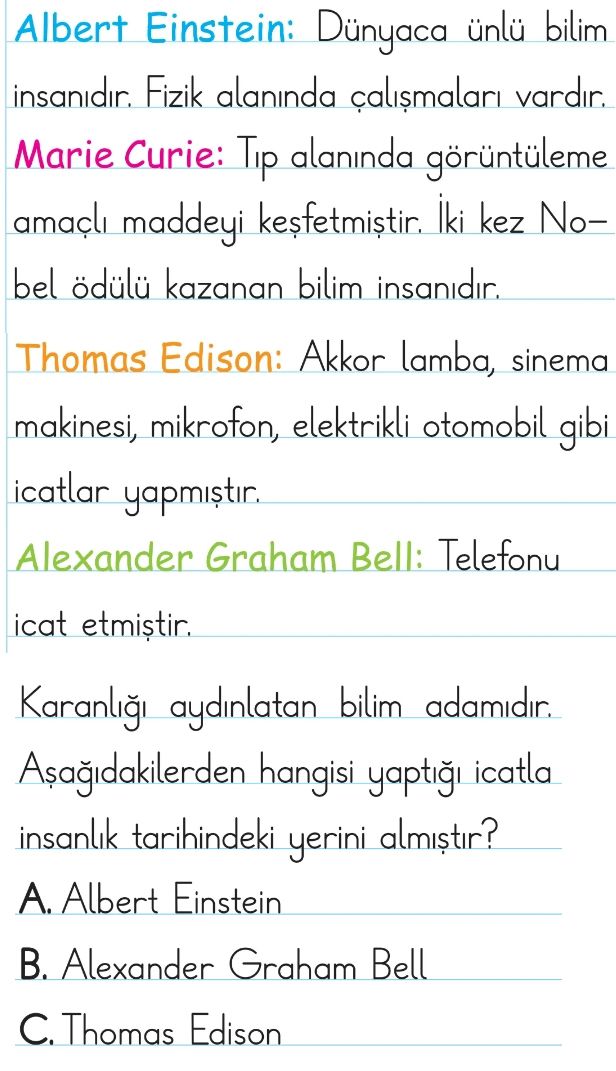 2. Sınıf Bilim İnsanları İyi ki Var Test 2