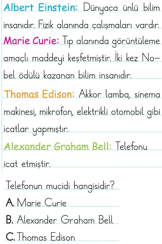 2. Sınıf Bilim İnsanları İyi ki Var Test 2