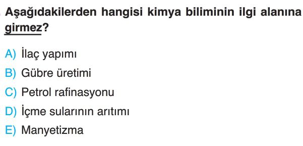 9. sınıf Kimya Disiplinleri ve Kimyacıların Çalışma Alanları Test 1