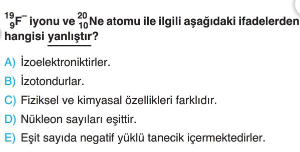 9. sınıf Atomun Yapısı Test 3