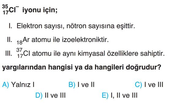 9. sınıf Atomun Yapısı Test 3
